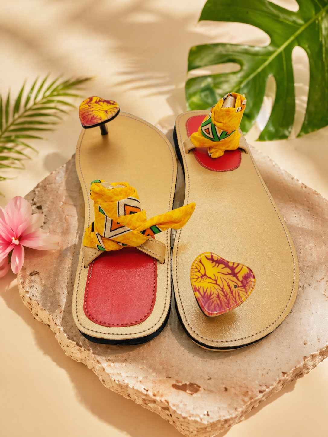 comfort with effortless elegance. Featuring a rich tan sole and vibrant patterned accents, each